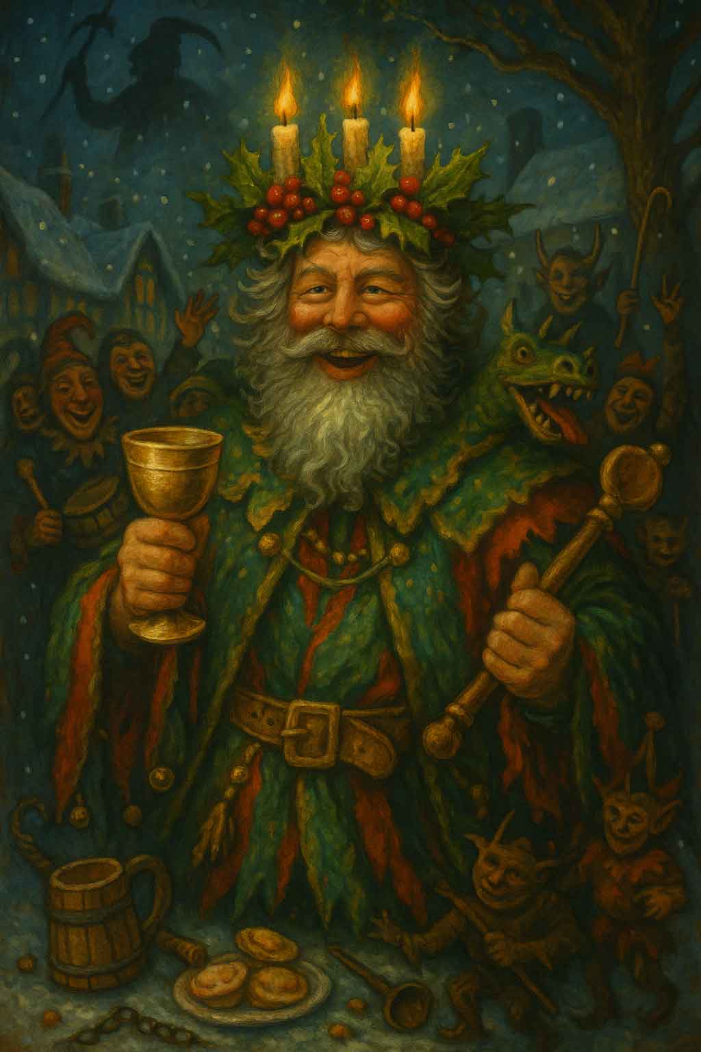 Long before Santa Claus rode in from the North Pole, England had its own spirit of Christmas, a wilder, older, and earthier figure. Known variously as the Lord of Misrule and Father Christmas, he came not to give gifts, but to preside over revelry, feasting, and folly. His origins lie not with saints, but with mummers, ale, and the ancient custom of misrule.