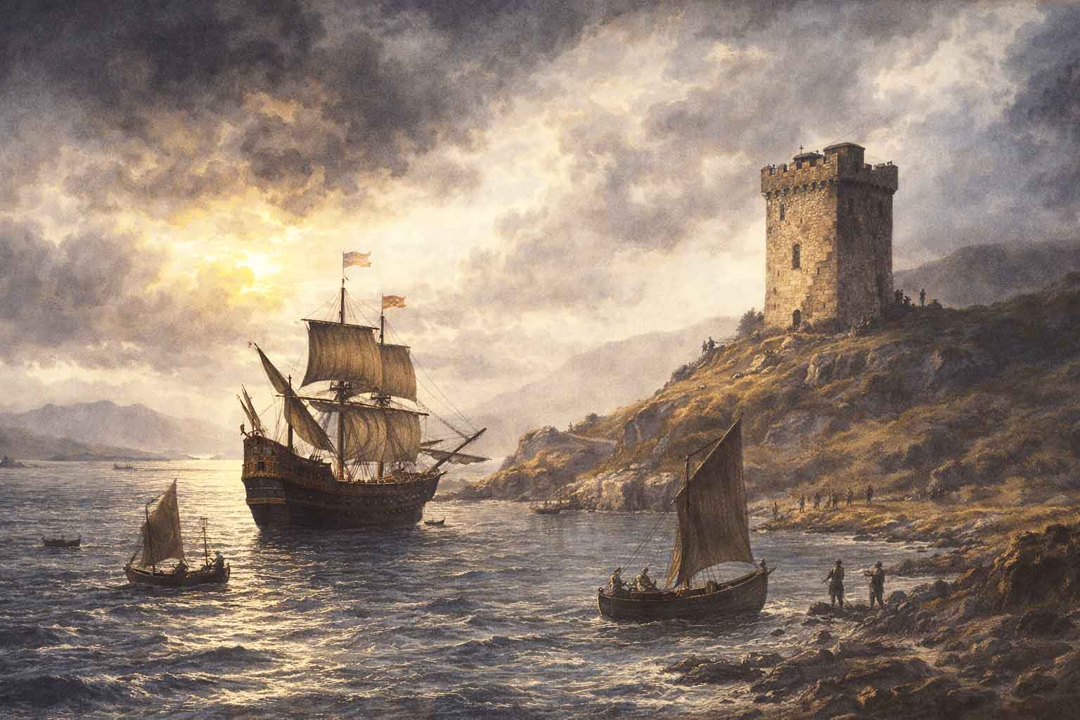 Nineteenth-century newspaper accounts were fascinated by Grace, and their retellings - however embellished - preserve something of the popular tradition that kept her memory alive on the island and along the western seaboard. She is described as having established her main stronghold at the castle on Clare Island, where she kept her largest vessels moored in the natural harbour while smaller craft lay at anchor at Carrigahowley - Rockfleet Castle - on the mainland shore. The island castle, standing on a sloping cliff overlooking the wide expanse of water that surrounds Clare on all sides, was ideally placed for her purposes: the inmates could see anything floating within twenty miles of them, while approaching vessels could not make out the castle until they were almost upon it.