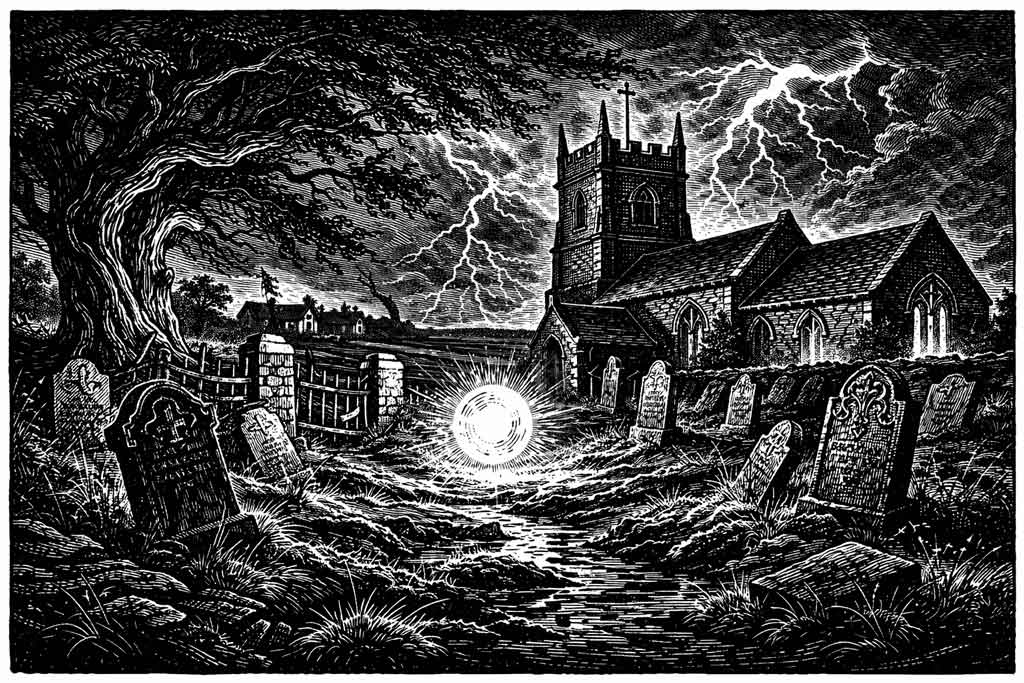 The size ranges from a few inches to nearly three feet. The luminosity ranges from a gentle glow to a flash that eclipses the moon. The behaviour ranges from the utterly harmless - passing through a kitchen without disturbing so much as a hair - to the catastrophic: destroying church steeples, killing livestock, splitting ancient trees to their roots, and on one terrible night in Yorkshire, blinding a woman and killing her husband in their own doorway.