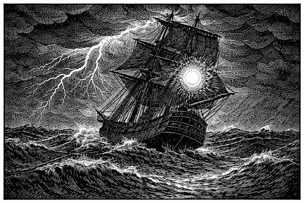 The Gorgon's homeward journey was eventful. Somewhere in the southern latitudes, on a night of violent thunder, the ship was engulfed by something extraordinary: